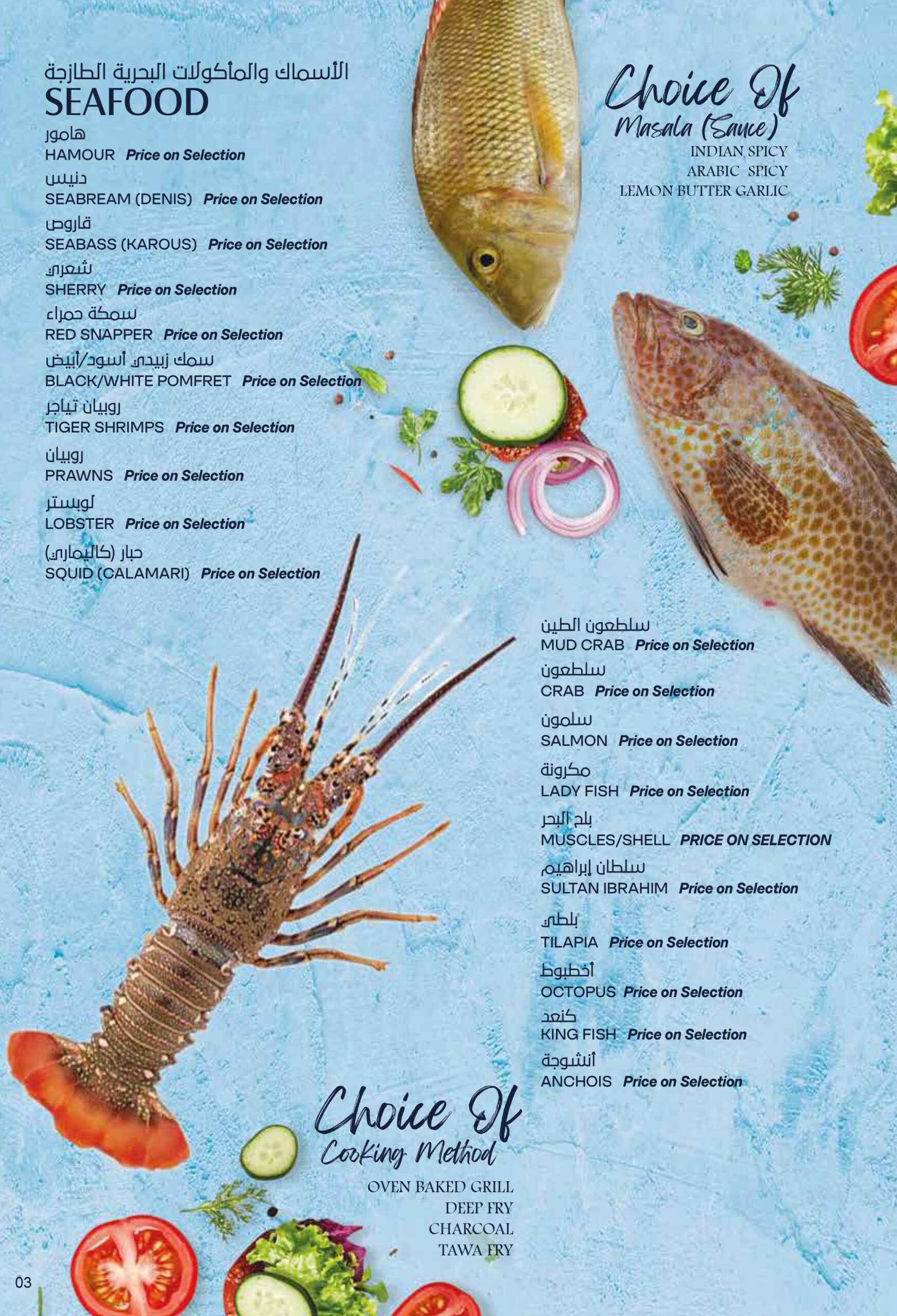 Explore the exquisite menu at Baba Al Bahar, the premier Seafood Restaurant in Dubai. Our carefully crafted offerings feature the freshest ocean catches, making us a top choice for seafood lovers. As a trusted Fish Restaurant in Dubai, we serve a wide variety of dishes, including perfectly grilled fish, succulent prawns, lobster, seafood soups, and signature platters designed to delight every palate. Whether you’re seeking the Best Seafood Restaurant in Dubai experience or dining at a Famous Fish Restaurant in Dubai, our menu promises bold flavors, quality ingredients, and unforgettable meals that keep you coming back for more.